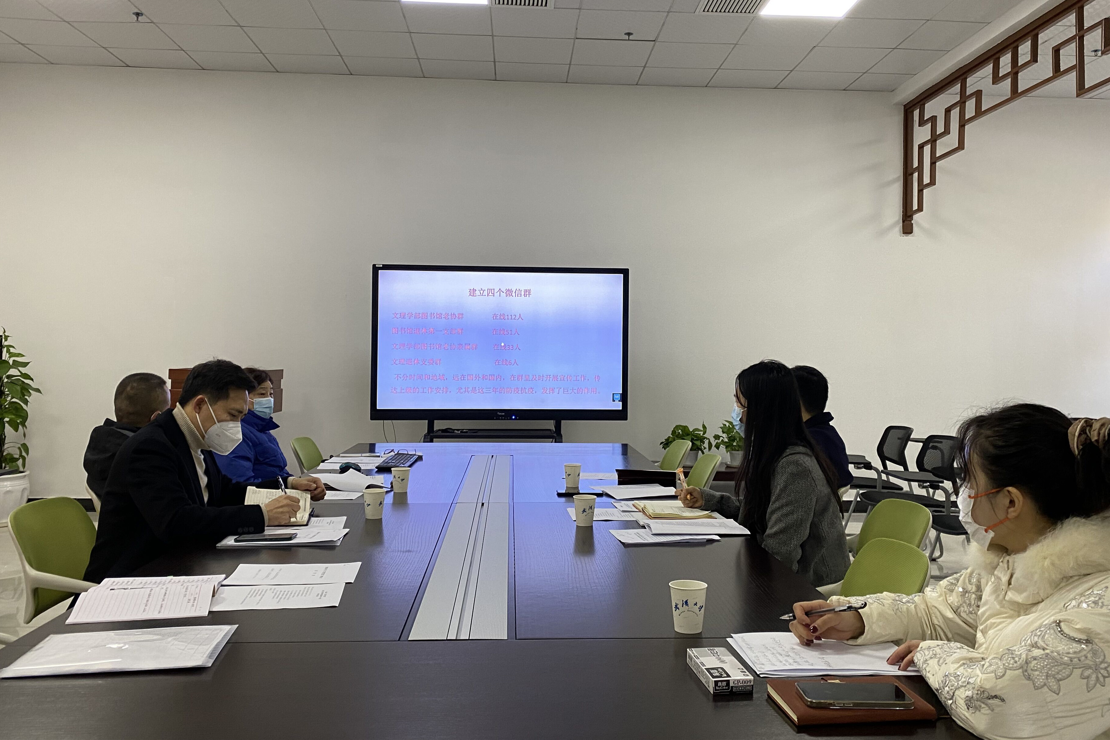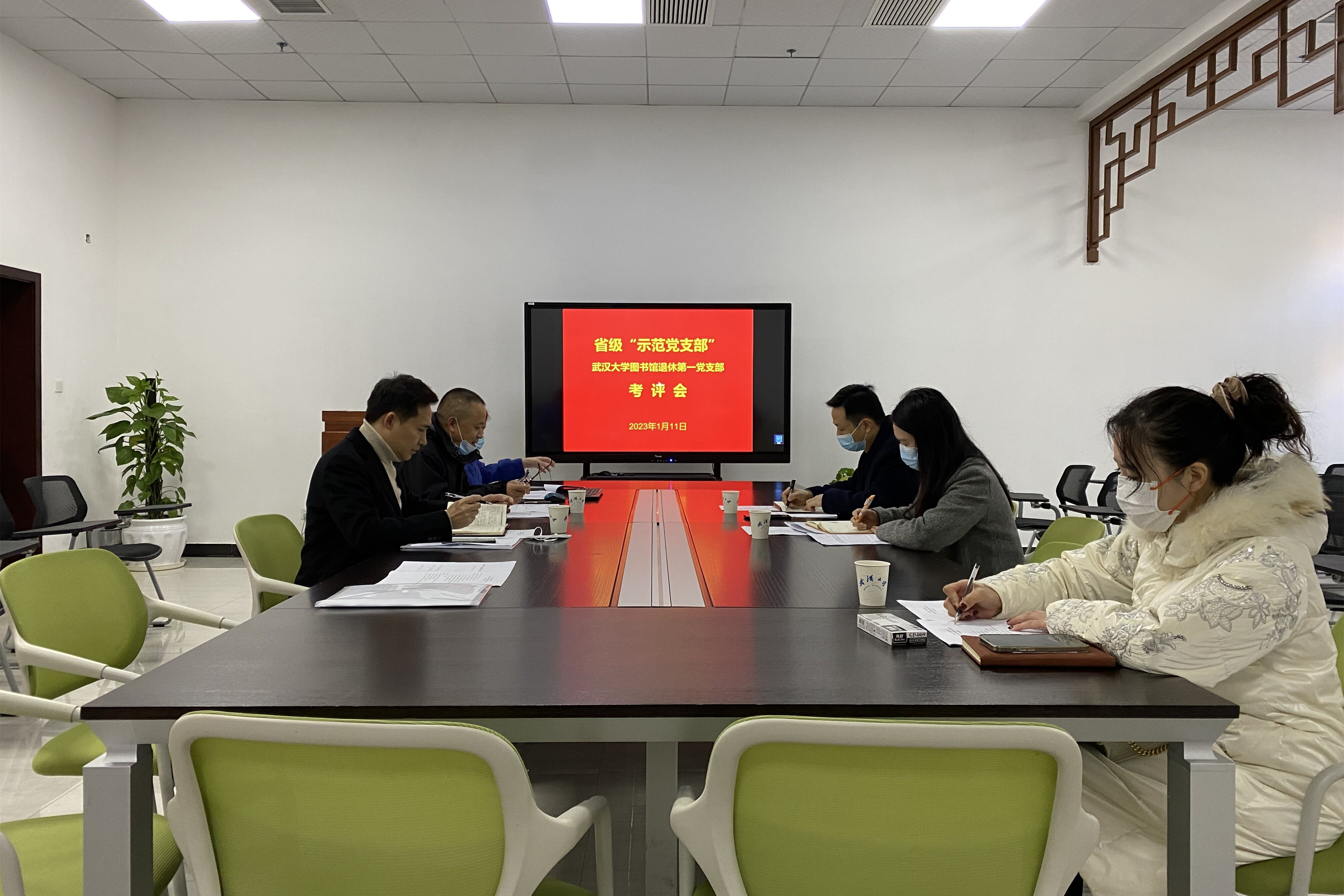 1月11日,省级“示范党支部”考评会在图书馆E栋第一会议室顺利举办,图书馆离退休第一党支部副书记刘啸冰代表支部汇报工作。武汉大学离退休工作处副处长张辉、离退休工作处一区办公室主任叶骏作为考评组成员出席会议,图书馆党委书记尤传明、副书记朱剑平、老年协会秘书长梁宜、党委专职组织员潘琴燕参加了会议。