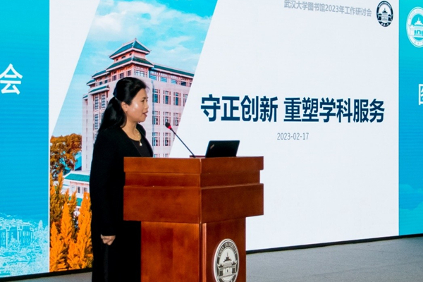 副馆长黄鹏以《图书馆服务守正创新》为题,提出新时代图书馆文化服务创新在坚守初心、打造新高地,科技赋能、构建新格局,守正创新、开启新征程,踔厉奋发、开辟新境界等方面的工作思路。同时就校庆馆藏精品古籍展、“学成以归”武汉大学建校130周年学位成果转化展的初步计划做了相关介绍。