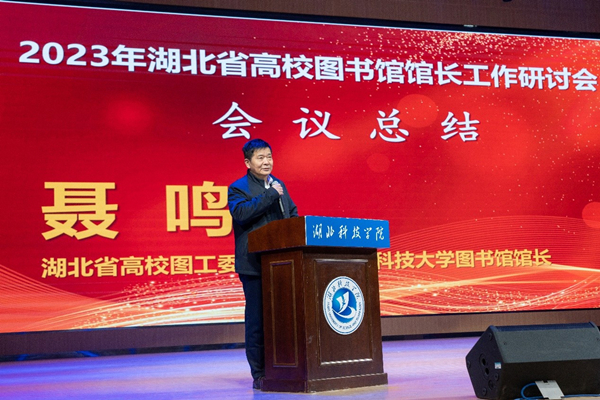 湖北省高校图工委副主任委员、华中科技大学图书馆馆长聂鸣作会议总结