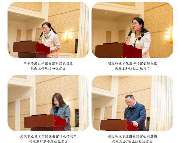 研讨结束后,会议进行了湖北省高校图书馆新任馆长的欢迎仪式,邀请八位新任馆长上台发表感言。各位新任馆长都表示,在新的岗位上将不忘初心,牢记使命,在高校图书馆事业上做出应有的贡献。